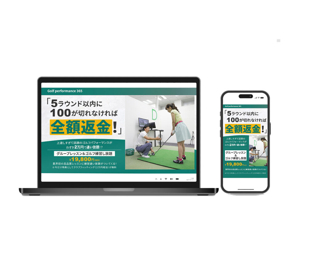 - ゴルフ練習スタジオ体験レッスンLP【工夫ポイント】 サービス内容とベネフィットが直感的に理解できるよう、訴求ポイントを整理して設計しました。 50代〜60代男性を想定し、落ち着きのある配色と可読性を重視したタイポグラフィを採用。 また、スマートフォン操作を前提にCTAのサイズ・配置を最適化し、ストレスなく行動につながるデザインを意識しています。