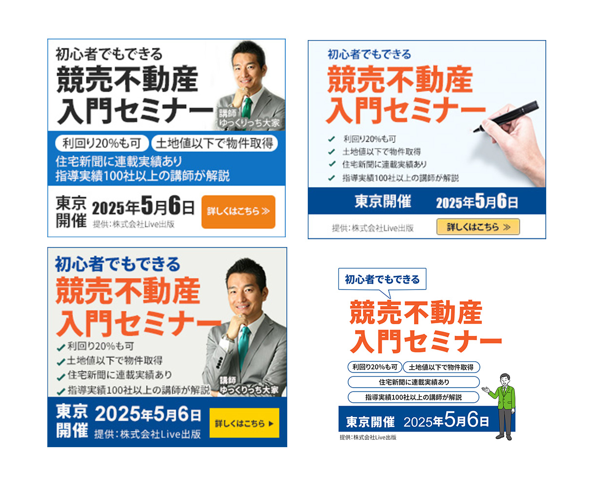 メッセージの優先順位を整理し、重要なキーワードが一瞬で目に入るよう文字の強弱や配置を設計しました。
